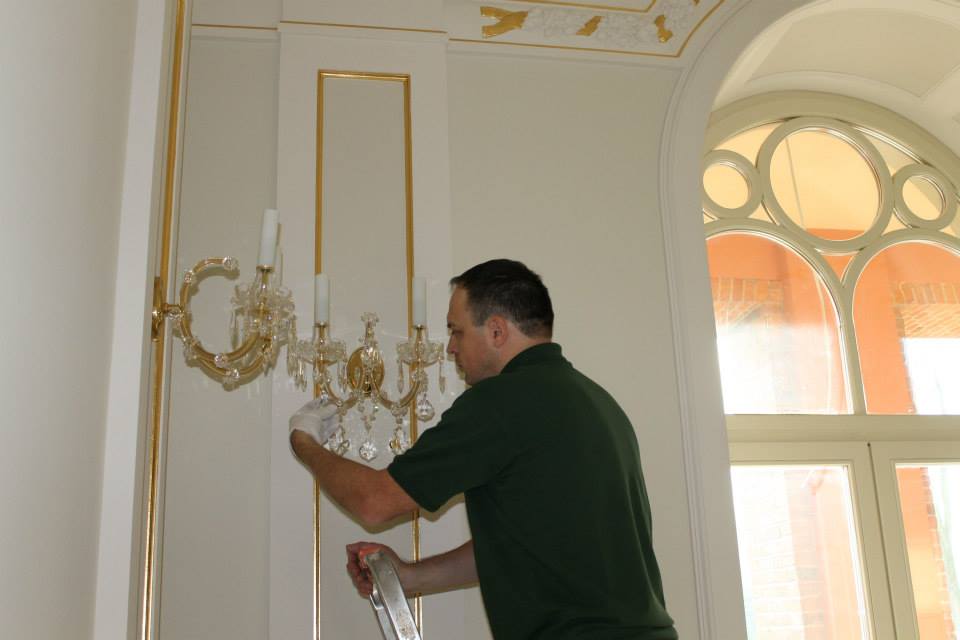 в польском городе Жагань. В Дворце принца мы установили люстры в главном зале,